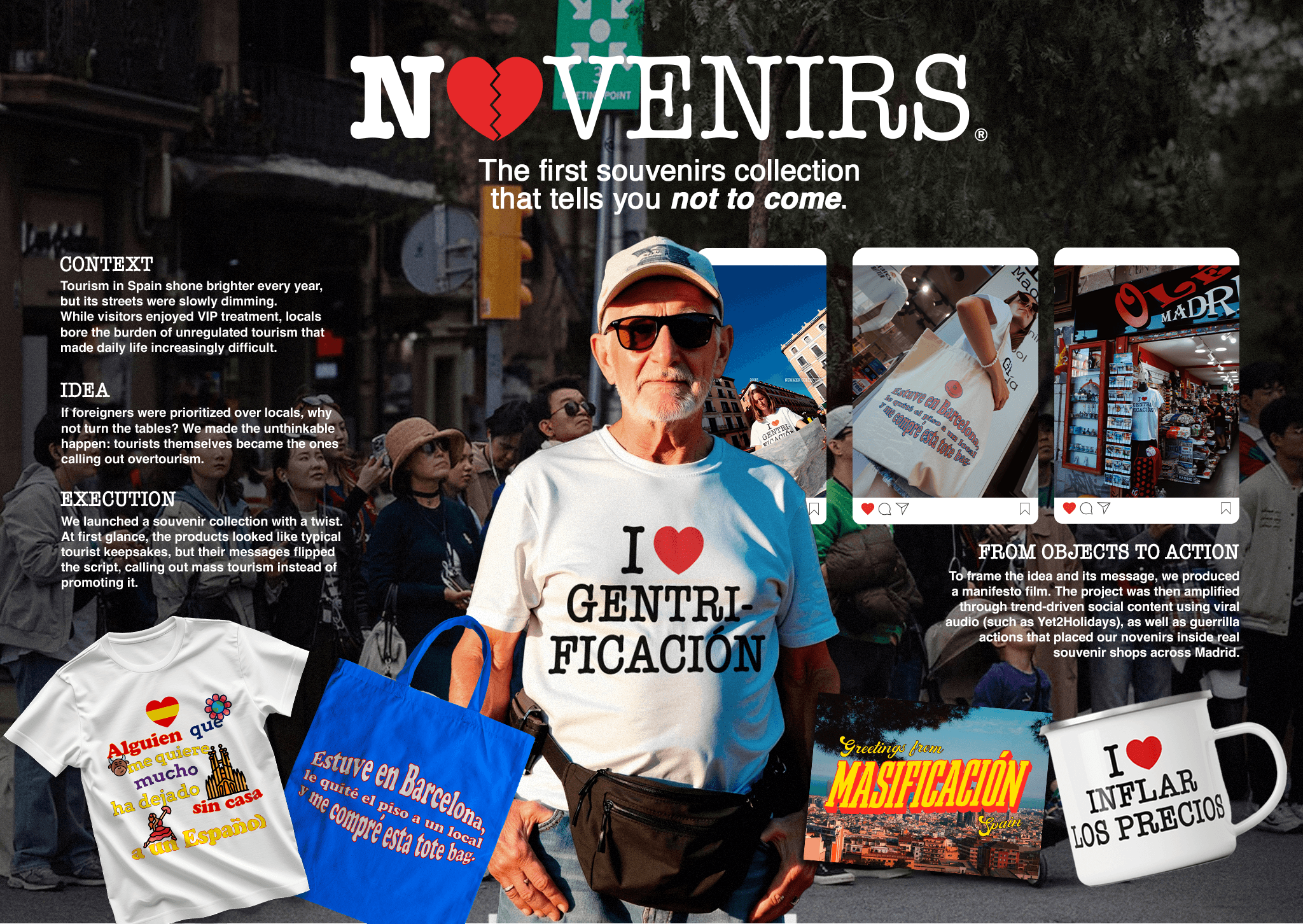 The challenge was to create a campaign with real cultural relevance. As summer loomed, Raquel, a proud “Madrileña”, saw her city being swallowed by the crowds. That's why we turned visitors into walking protests against over-tourism.